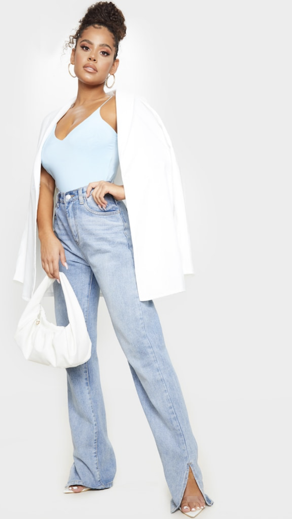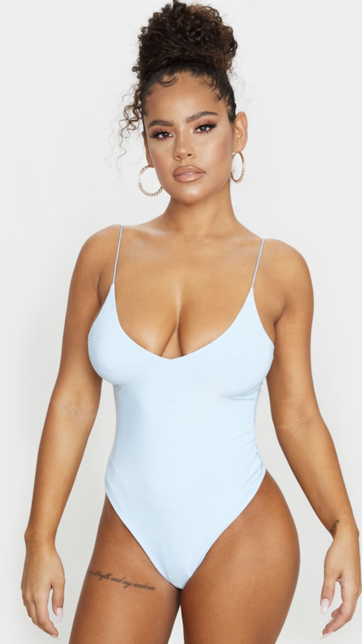 Add some pastel hues to your look with this bodysuit. Featuring a pastel blue material with elasticated spaghetti straps and popper fastenings. Style this with light wash jeans and barely-there heels for drinks with the dolls.