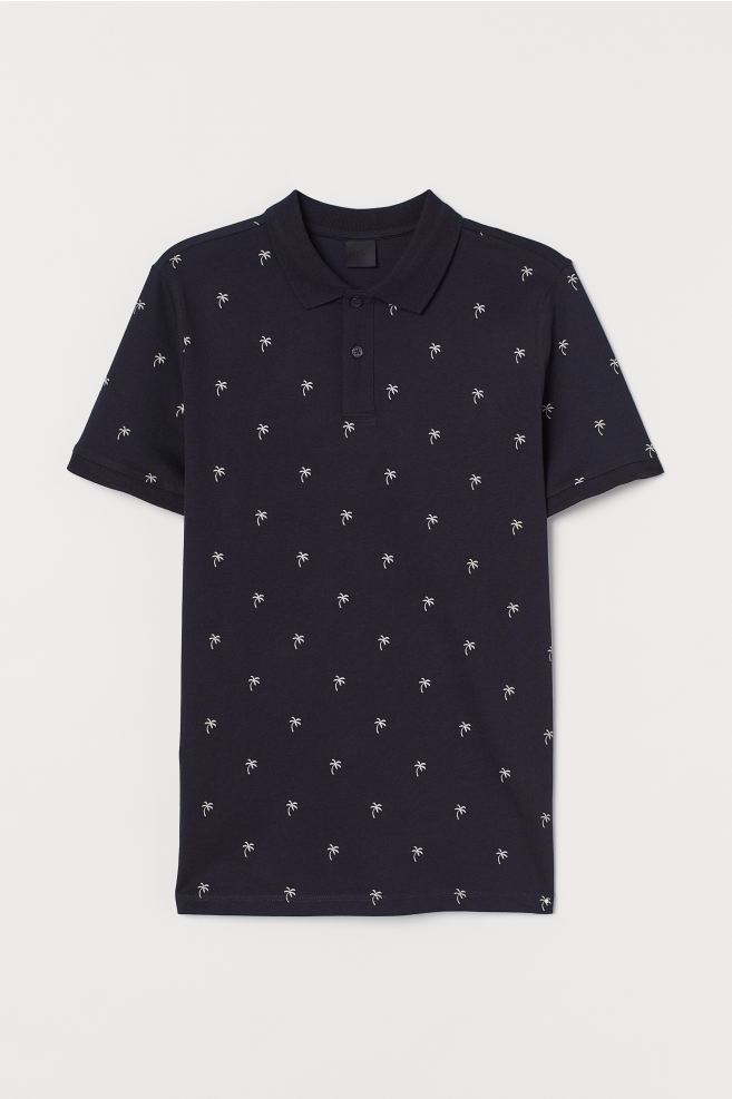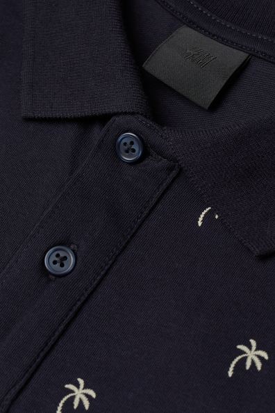 Short-sleeved polo shirt in stretch cotton jersey with a collar and button placket. Slim fit.