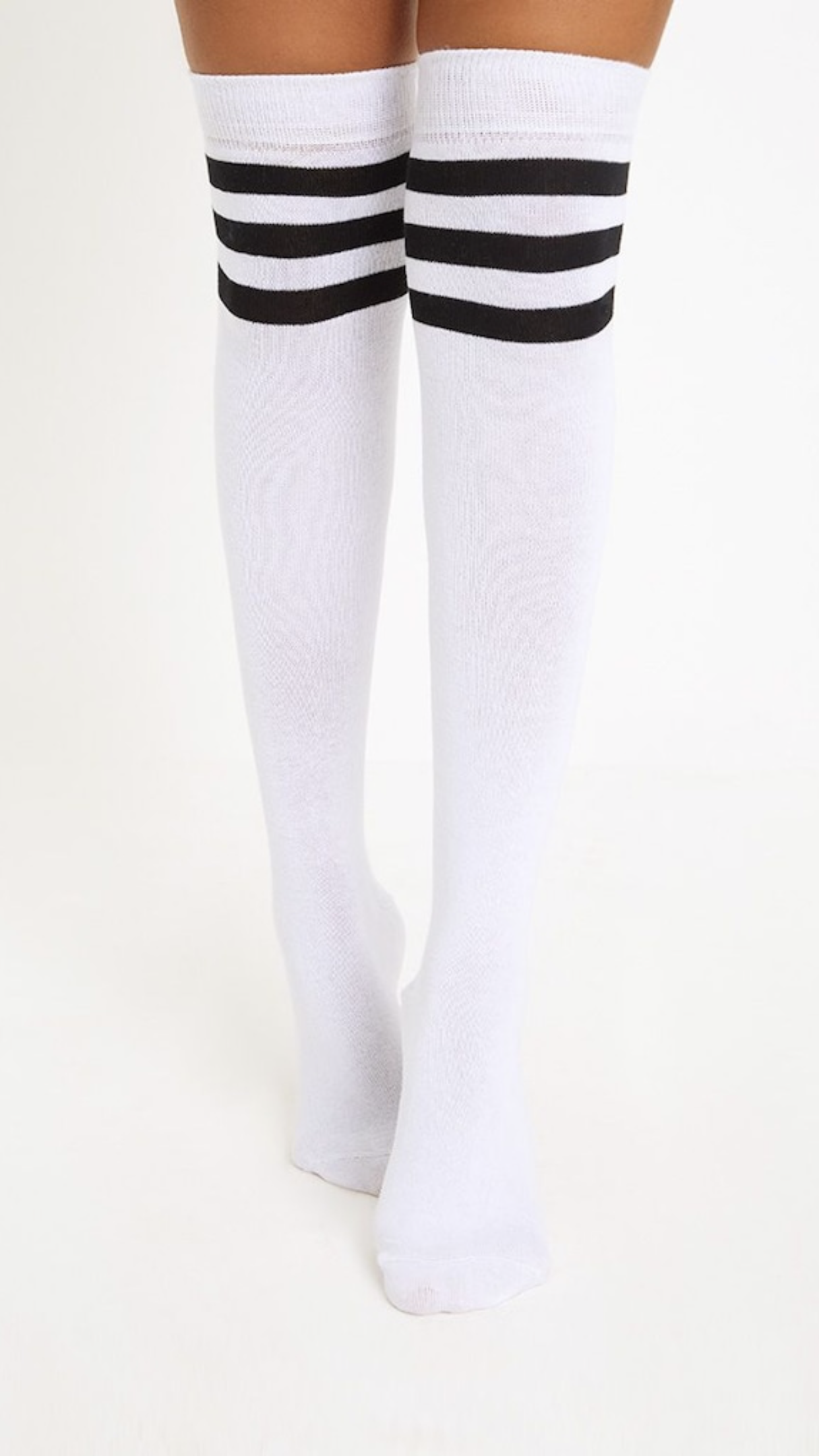 White & Black Striped Over The Knee Socks